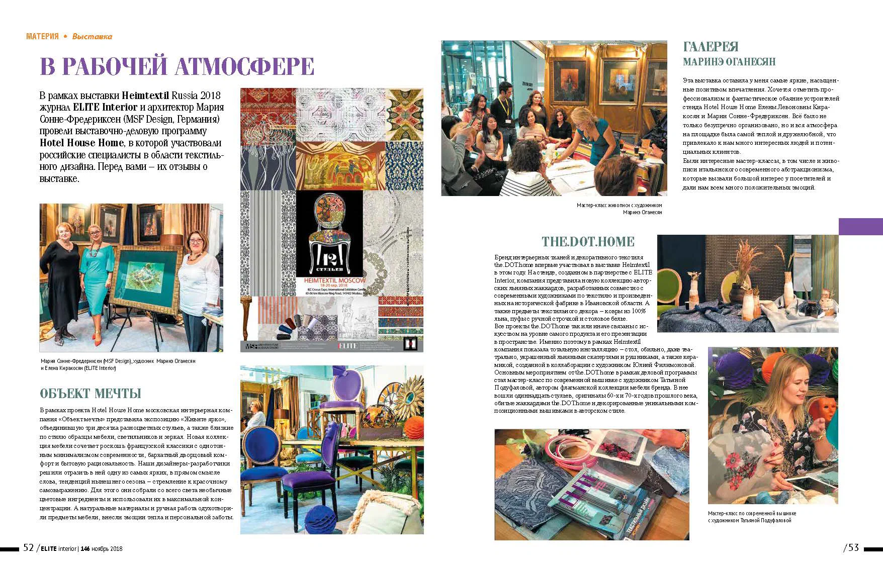 The article, published in ELITE Interior magazine, provides extensive coverage of the exhibition’s highlights, focusing on how the HHH platform brought together architects, interior designers, and textile manufacturers to discuss the future of hospitality design. The report captures the dynamic atmosphere of the event, where international experts demonstrated best practices in hotel and specialized housing furnishing, with particular emphasis on the role of textiles in creating memorable guest experiences.